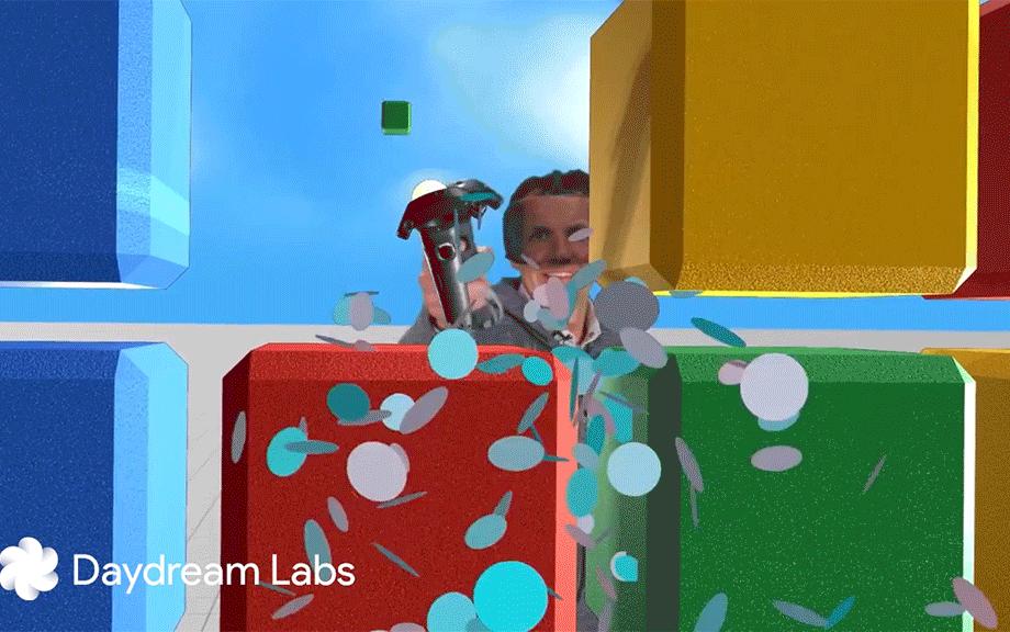 这是谷歌在官方博客里展示的效果图,这个玩家戴着HTC的Vive头显,在游戏中玩得不亦乐乎,眼神飘来飘去,兴奋中带着一些猥琐,脸部的表情十分丰富。