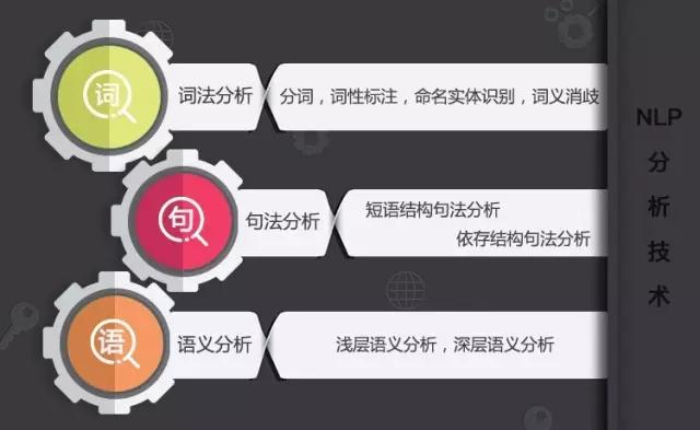 NLP技术大致包含三个层面:词法分析、句法分析、语义分析,三者之间既递进又相互包含。