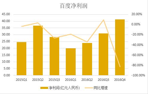 今日早间,百度周四发布了该公司截至2016年12月31日的第四季度及全年未经审计财报,出现了营收利润双双下跌的情况。