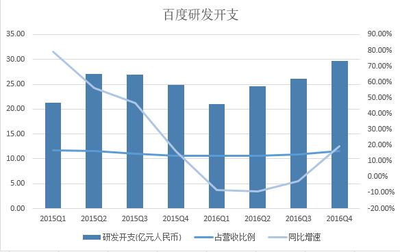 百度解释这主要由于研发员工相关支出的增长,可能与百度最近加大人工智能方面的投入有关。