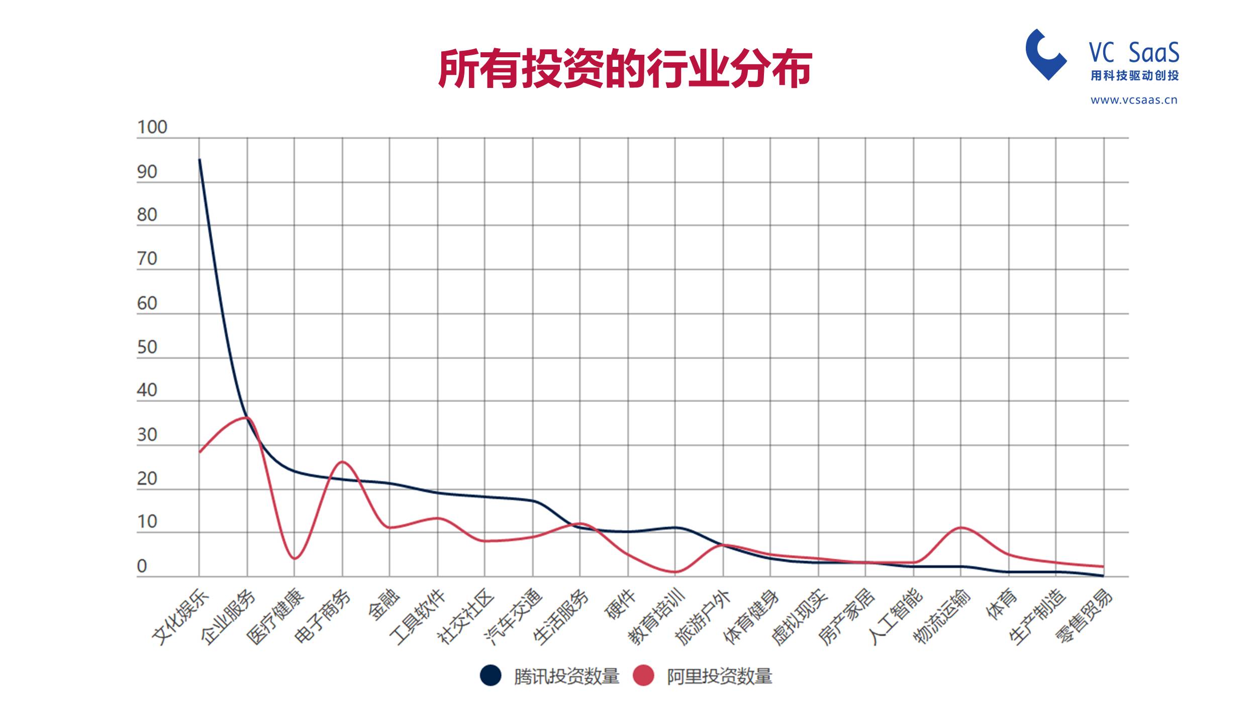 纵观所有腾讯和阿里的布局当中,腾讯在文化娱乐布局最深,阿里在企业服务中布局最深。