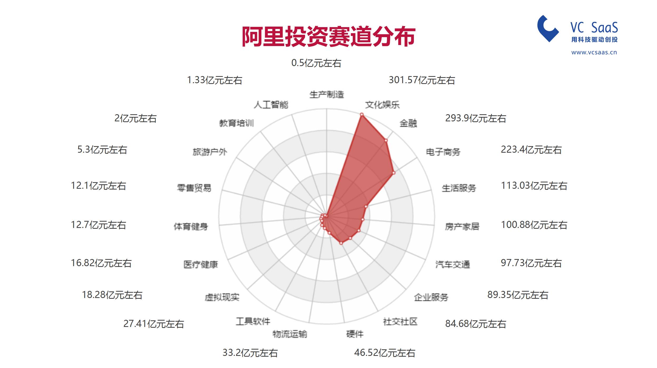 阿里资本在文化娱乐、金融领域、电子商务这三个方向砸下重金,分别高达301亿、293亿、223亿元。