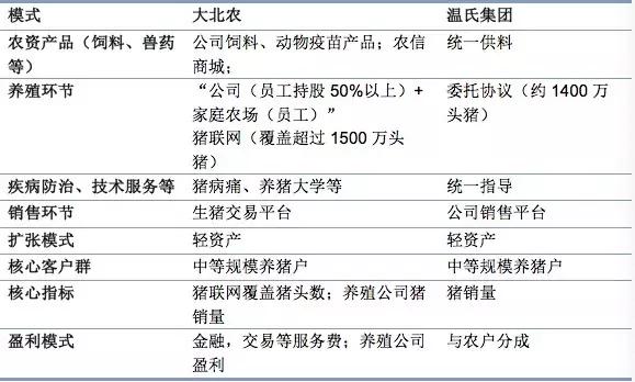 大北农和温氏同属轻资产模式,不需承担养猪场土地和劳工等成本。该模式可快速扩张,对比和温氏同期开始创业养猪的牧原股份,采用完全一体化的重资产自繁自养模式,15年牧原股份出栏量高不足200万头,而温氏集团可达到1500万头。