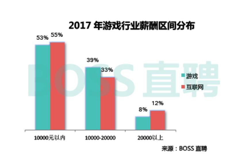 2017年,游戏行业平均招聘薪酬为11556元/月,比互联网均值低2.1%。