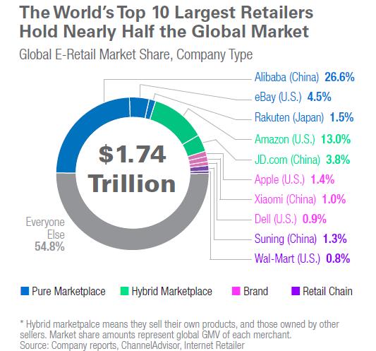 这样的回答如今似乎也还适用。据外媒报道,在全球电商市场中,eBay仅次于阿里和亚马逊排在第三。公司旗下的用户优势和市场优势还可以发挥。