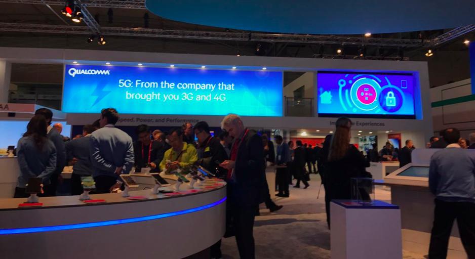 MWC现场,高通的展台正好坐落于Intel的斜对面。走在展厅,远远就能看到高通5G相关的宣传。
