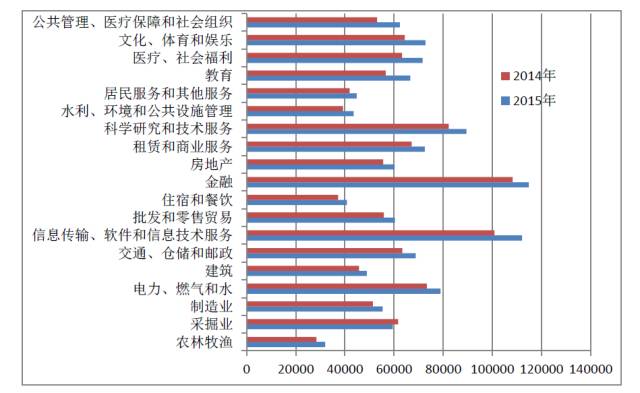 图1 平均工资的行业比较(单位:元)