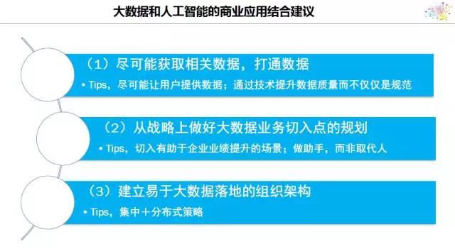 认真的规划,确定了应用场景之后,再去看数据模型怎么建、产品怎么建,再去看基于这些应用场景,需要做些什么样的数据。如果数据不够,再去看和外面合作或者交易什么样的数据。