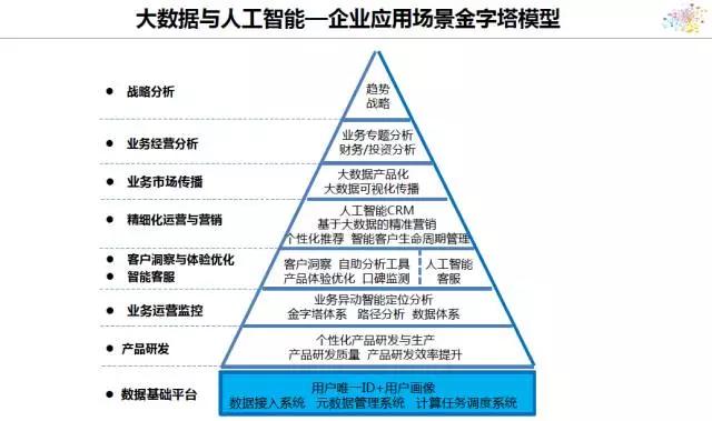 这是我总结的目前比较常用的大数据在企业里面应用场景——应用的金字塔。