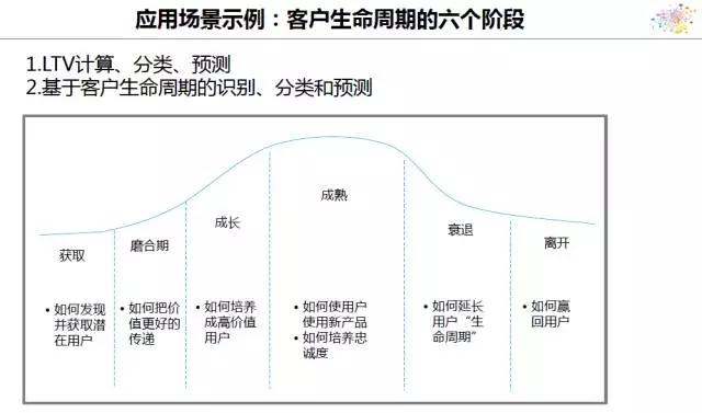 你能不能看到你这个客户处于磨合期,他现在磨合得不爽,你要引导他?可能不知道。或者说你知道这个客户现在处于成长期,他特别兴奋,跟谈恋爱一样,属于蜜月期,能不能趁热打铁多卖几个产品?能不能通过他的行为、爱好做精准的关联推荐和个性化推荐等等?这是要解决这个问题。