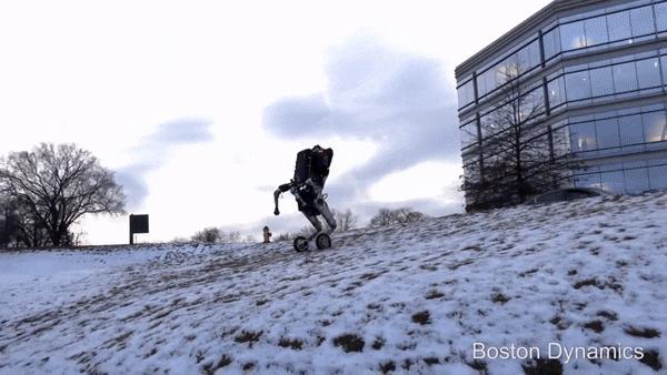 但从视频中我们可以看出,Handle依然能够利用自身弹跳来处理一些障碍。即使是在恶劣的天气情况下,硬件和软件的结合也能保证Handle的平稳运作。