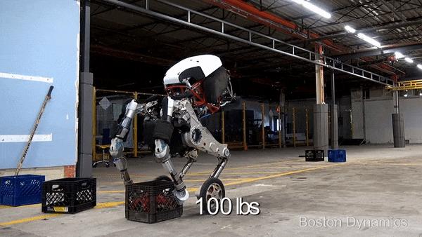 Handle高1.96米,垂直跳跃高度可以达到惊人的1.2米,时速可达到14.5公里!它虽然占地面积小,但负载量却不小。