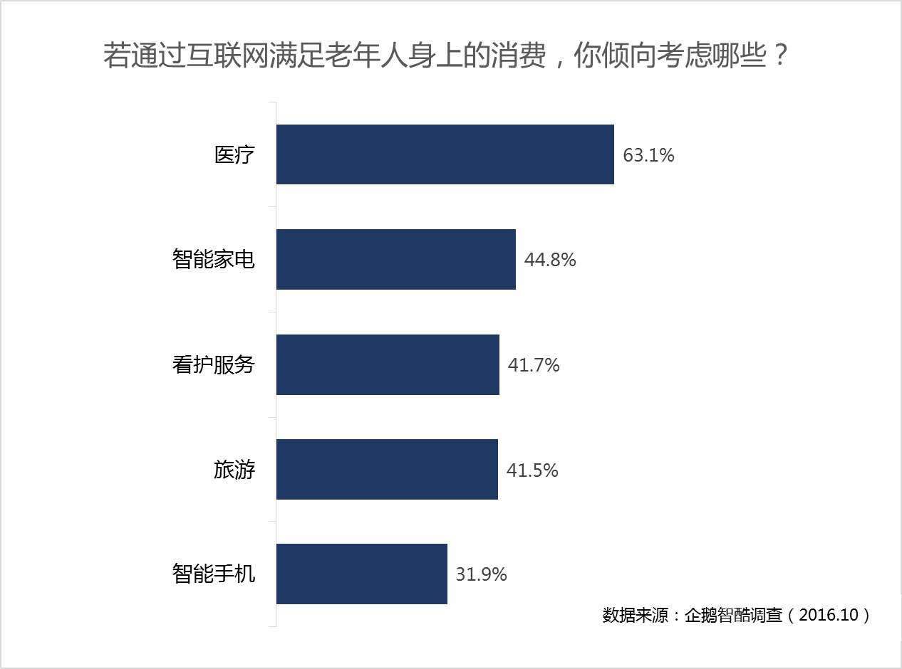 养老e周刊(公众号:Agingweekly)本周将为大家梳理腾讯企鹅智酷在2016年12月底发布的中国互联网未来5年趋势报告,这当中对于银发经济表达了足够的乐观。本期“请回答2017”,我们将首先解读老年人消费中医疗服务的机会与挑战: