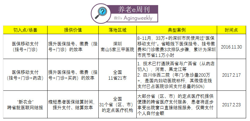 从2016年4月22日微信与深圳人社局签约开始,至今不到1年的时间,微信+医保支付已经完成了“三甲医院门诊→医保药店买药→异地就医”的场景升级。