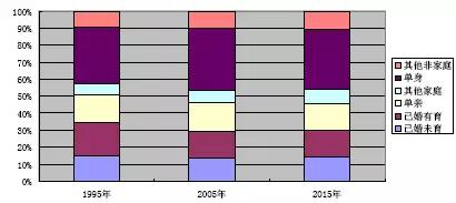 图1-6 1995、2005、2015年美国住房承租户家庭类型构成数据来源:John Center for Housing Studies of Harvard University, America’s Rental Housing, Expanding Options for Diverse and Growing Demand.