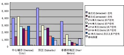 如图1-2所示,美国大都市地区与非都市地区在租赁住房类型方面的差异显著,其中: