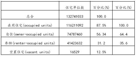 表1-1 2014年美国在用住宅存量占用结构数据来源:U.S. Census Bureau,selected housing characteristics, 2010-2014 American Community Survey 5-year Estimates.