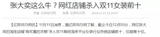 比如国内的张大奕,曾经一次直播2小时卖出去2000万的衣服,其在2016年双11中,销量进入前十: