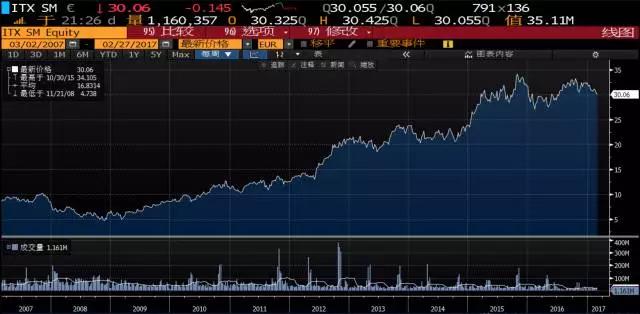 Zara的成功也将其创始人推向世界首富,其股价目前也处于历史最高,市值超过900亿美金: