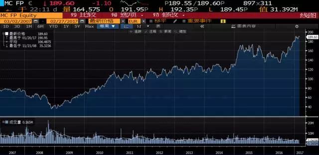 看看下面这张LV集团的股价图,也许你就明白我在说什么了: