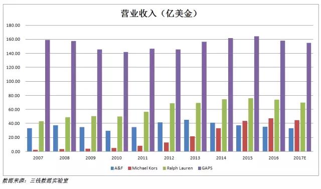 A&F 的股价从2011年最高67已跌到11,跌幅达83%,MK的股价从2014年的最高98也最低跌到35,跌幅达65%: