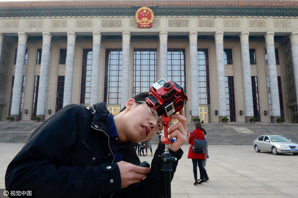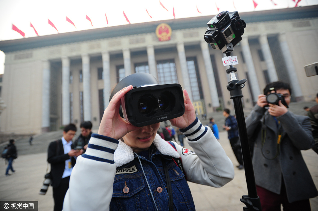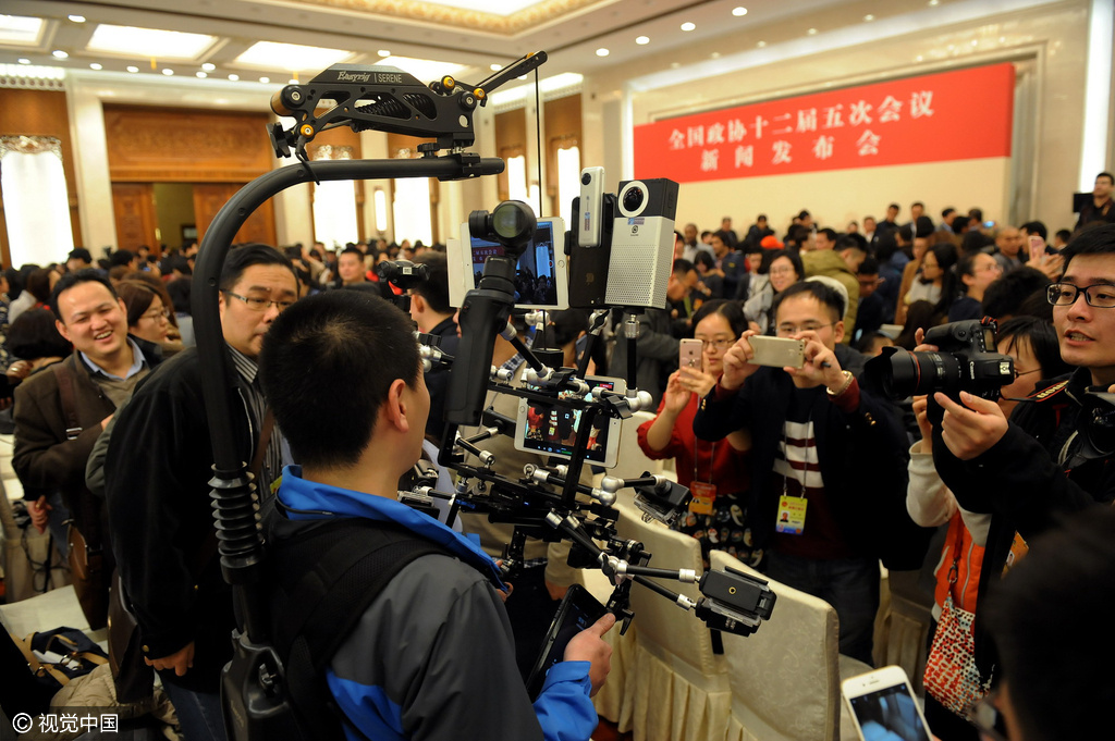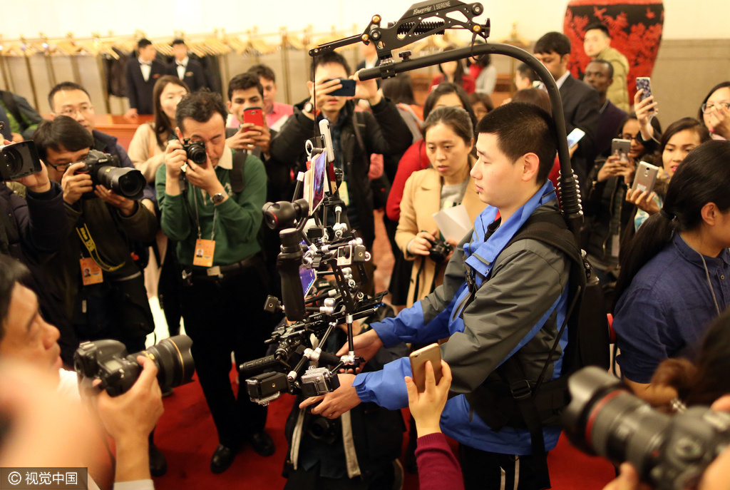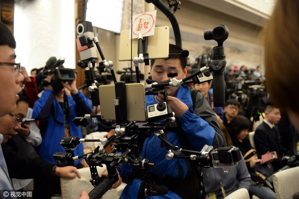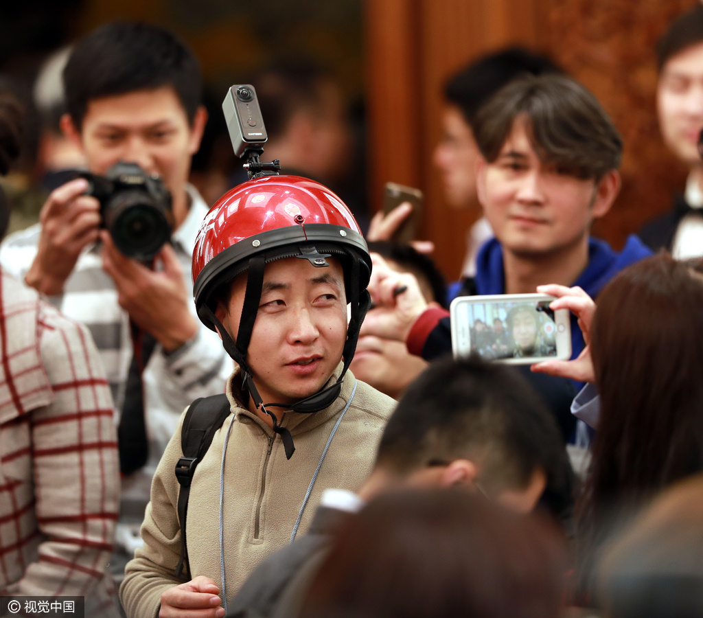 “钢铁侠”、全景拍摄帽子,高科技媒体装备亮相全国两会 | 图说