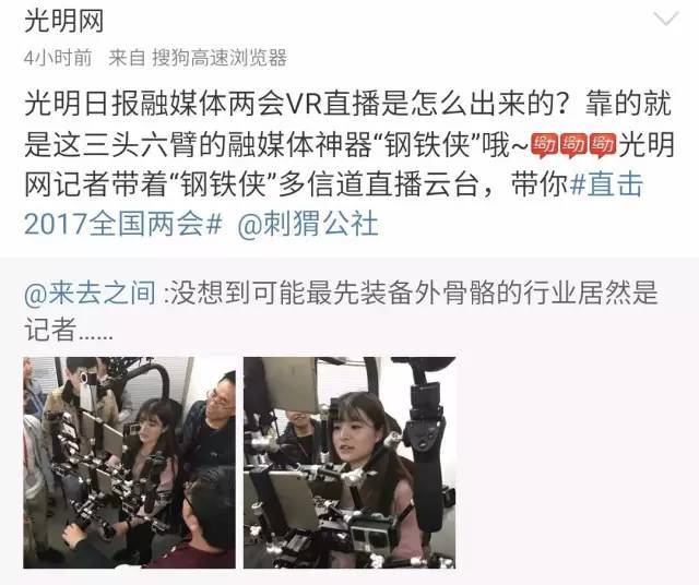 光明日报还揭晓了这套设备的用处,原来两会 VR 直播也有它的功劳啊 ~