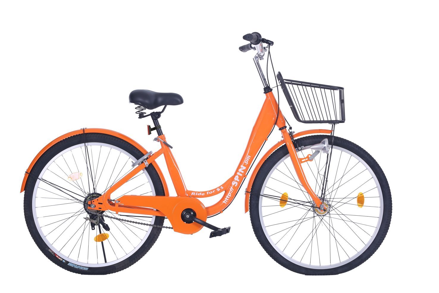 从上图可以看出,Spin 单车在硬件方面与摩拜单车类似,无车桩、橙色、有车筐、实体轮胎,第一代单车使用的是类似 ofo 的车锁,之后会配备自行研发的智能锁。