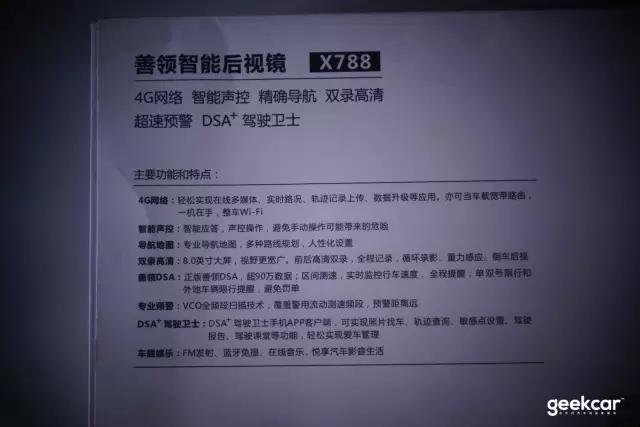 GeekCar 在此前也拿到了一台机器进行体验,不过型号不是 X798,而是 X788,从名字上能看出来,后者比 X798 的功能会少一些,主要包括语音交互、导航、前后双行车记录、电子狗、4G 连网/Wi-Fi 热点等功能,屏幕尺寸是 8 寸。而主推的 X798,功能更多,屏幕变成 10 寸,在淘宝上的价格在 3500 左右,这和我们之前体验过的搭载阿里 YunOS 系统的一款产品价格类似。