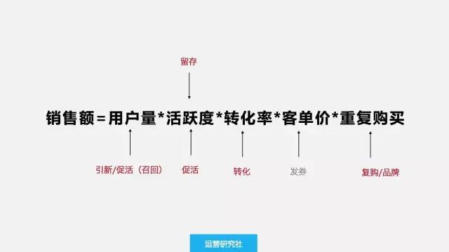 本文的开头提到的场景案例属于电商促销的典型节奏,主要围绕“流量”、“留存”、“转化率”、“客单价”、“复购率”这6大影响销售额的因素进行全覆盖策划,并且保证每一个因子都有对有的活动对其进行数据提升。