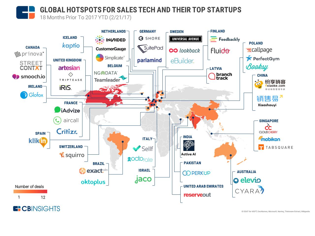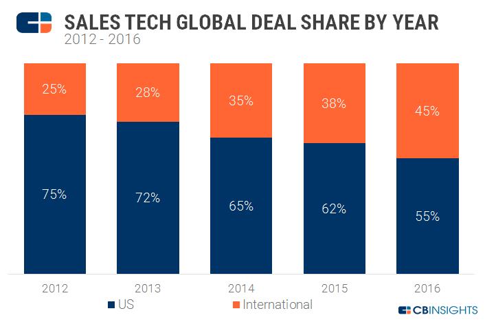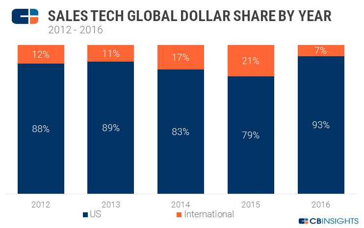 美国仍然是营销技术产业的领头羊。不过,在2012年至2016年,美国以外的营销技术创业公司的投资交易份额从25%增至45%。以纷享销客和销售易为代表的中国的营销技术企业,资金充裕程度仅次于美国。
