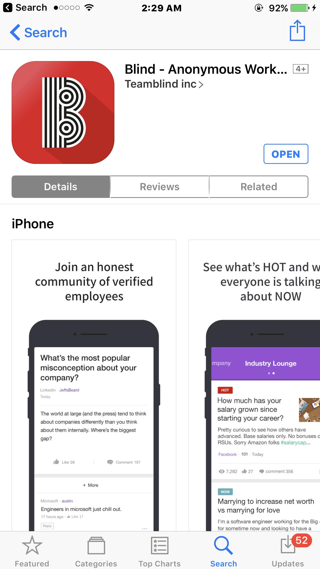 Blind在苹果应用商店的下载界面