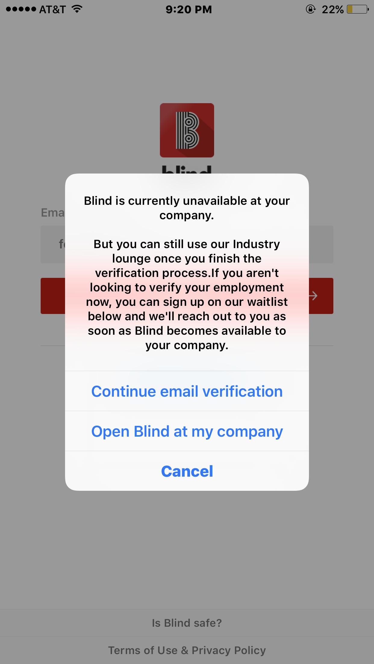 别想啦!Blind要求每一个注册的账号都与公司邮箱相关联,并且必须通过该电子邮件地址进行验证。