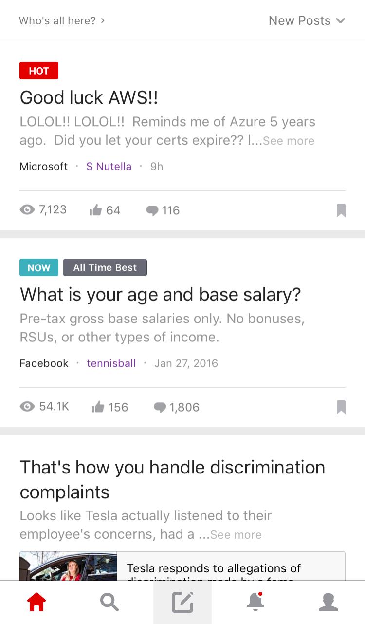 在这里,你可以看到Uber内部员工对于最近Uber最近性别歧视和性骚扰丑闻的态度,也可以看到各家公司对于SNAP(阅后即焚的社交应用Snapchat的母公司)上市前景的看法,你还可以和同僚们匿名讨论薪资待遇,或者在公司官宣之前了解最新决策……