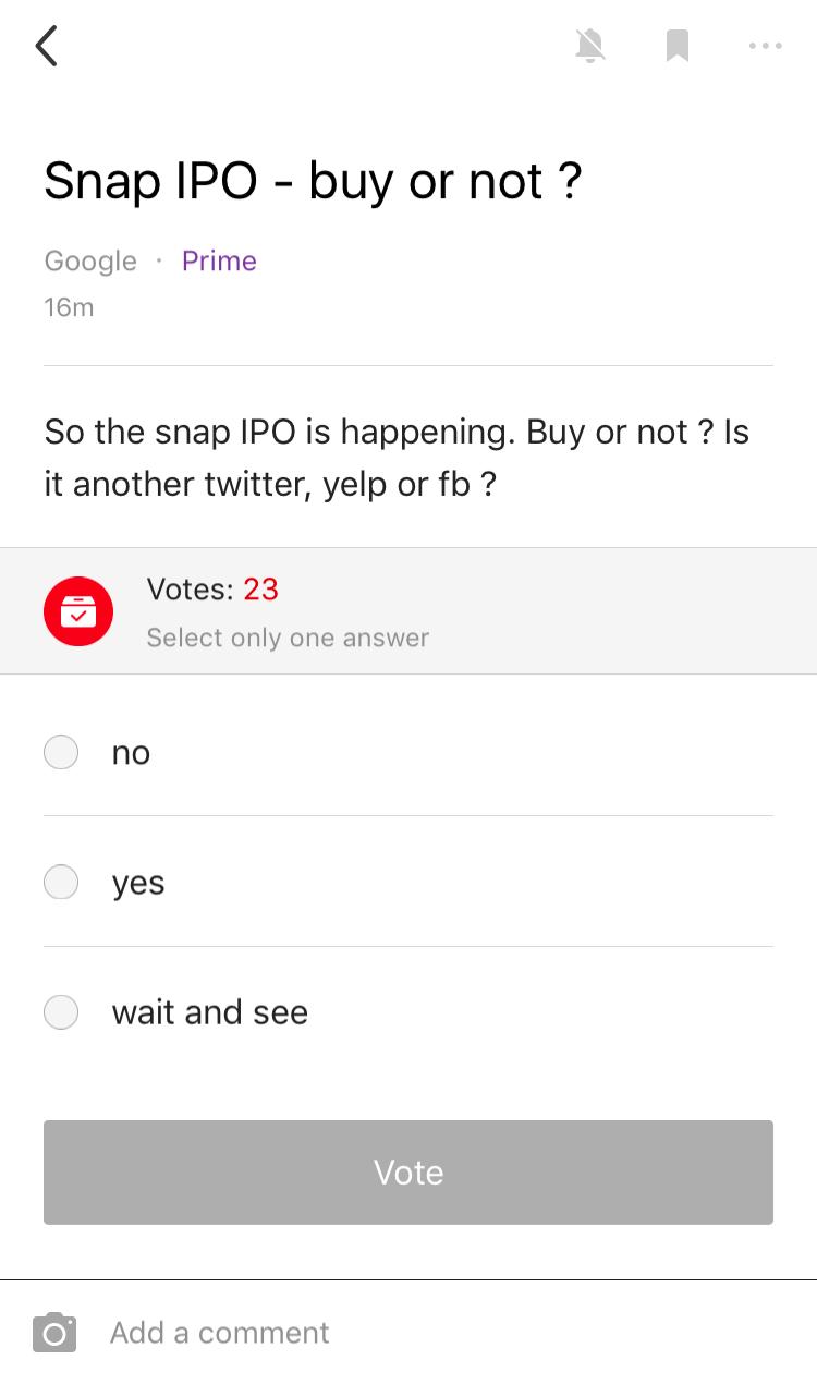 Google的一位匿名员工在讨论要不要买Snap的股票