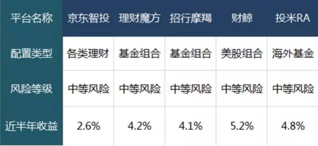 《华尔街见闻》曾挑选了一些代表性平台,以中等风险为标准,对比了不同智能投顾平台去年下半年收益表现: