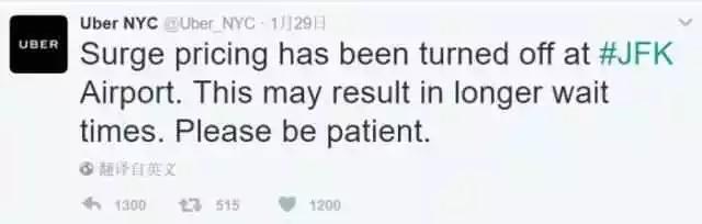 2月初,纽约出租车司机联合会发表声明,当天晚上六点到七点之间停止接送工作,以行动抵制特朗普的“穆斯林禁令”,然而Uber却在这个当口宣布关闭肯尼迪机场附近的“动态定价”功能,也就是说高峰期不涨价,这样在价格上就会比出租车更低。