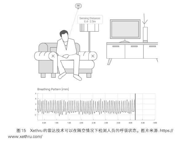 Xethru公司提供的利用雷达隔空探测呼吸节律的方法,和Project Soli雷达有着本质的不同。Xethru雷达基于的是超宽频技术,而Soli雷达使用的是窄频技术。超宽频雷达通过发送与接收非常短的脉冲,可以探测极其细微的动作。一般而言,雷达能够感知的动作细微度与使用的带宽成反比,Xethru使用的3.1~10.6GHz的频段,将感知精度又带入了一个新的层次。该频段的电磁波可以轻易穿透墙壁或者衣服,甚至可以隔空检测人的心跳。假想不久的将来,警察局里将用上新型雷达测谎仪,隔空测心跳来判断嫌疑犯是不是在撒谎;相亲派对上的技术宅男们,也能通过雷达判断对面的美女是不是对其有意而“怦然心动”,采取行动猛烈追求……目前Xethru的最大问题是如何在人移动的情况下检测呼吸状况。根据笔者推算,它目前的应用场景可能还是在假定人在静止不动的情况下。当然,即使如此也不错了,至少可以做到像巫师的“照妖镜”,隔空区分“是人是妖”吧。