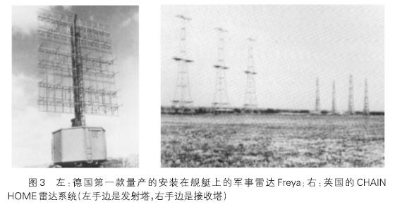雷达技术真正突飞猛进,是在第二次世界大战时期。这个时期无论英美还是德国都在积极研制更精准的雷达用以实时定位对方的飞机船只。如图3所示,德国的Freya雷达以及英国的CHAIN HOME雷达阵列都是比较早期投入军事侦察的应用实例。这些军事雷达对于第二次世界大战的走势和战局都起到了关键性的作用。战争的较量,在很大程度上即是战争背后各国军事科技的较量。能够提前掌握对方的军事动态并且做出预判,从而有效干预,是战场上的制胜法宝之一,所谓知己知彼方能百战不殆。