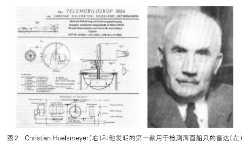 19世纪中叶,麦克斯韦建立了电磁场方程,为整个无线通信以及雷达应用奠定了理论基础。该方程完整地描述了电场的变化如何导致磁场的变化,磁场的变化又如何导致电场的变化,从而产生了所谓电磁波概念。随后不久,赫兹就通过实验证实了电磁波的真实存在。1904年,Christian Huelsmeyer(见图2)首先提出将电磁波应用于雷达,利用电磁波反射来探测海面上的船只。1922年,无线电之父马可尼(Guglielmo Marchese Marconi)也将雷达的概念完整地表述了出来,他们都可以算作现代雷达的开山鼻祖。