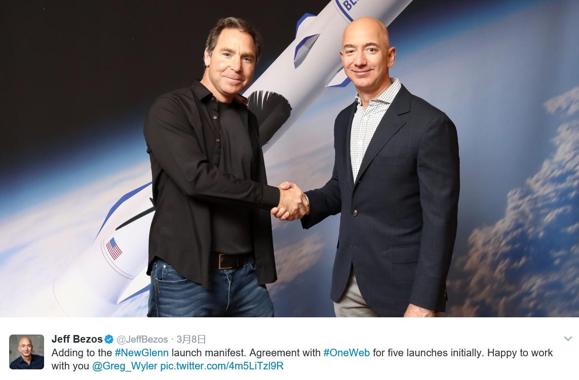 随后,颇懂“礼尚往来”的贝索斯在Twitter上确认了这一协议,并向OneWeb执行主席Greg Wyler隔空示好: