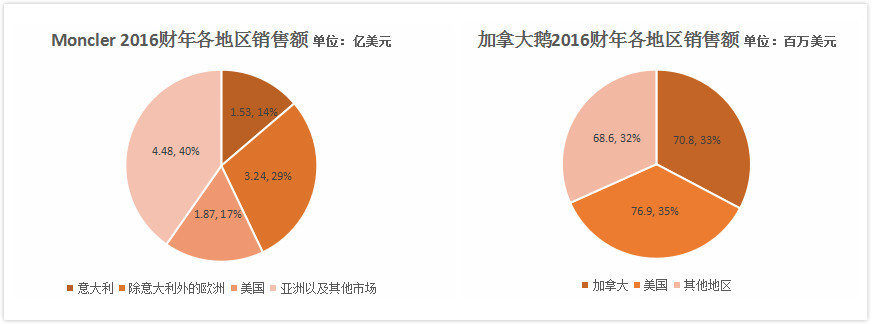 六张图看三大羽绒服集团:Moncler最赚钱,加拿大鹅炒得最火,波司登最接地气 | 图说