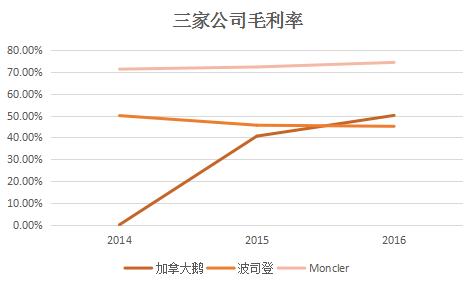 这跟本身公司的定位也有关系,Moncler是奢侈品牌,而且没有像加拿大鹅一样强调本土制造。因此,在制造上成本相对比较低。用比较小的成本换来比较可观的收入。而波司登价格比较低,属于薄利多销型。