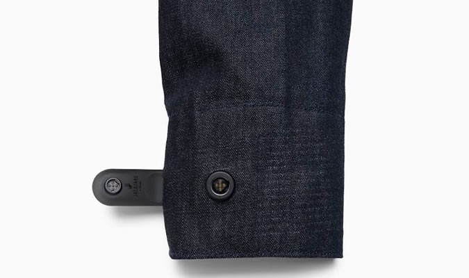这个设计将会在今年春天发布,第一波使用者设定为在城市骑车上下班的通勤一族。你可以通过点击、滑动或者按住夹克的袖口来完成平时需要触控手机屏幕的操作,比如接听或挂断电话、启动语音服务或者切换歌曲等等,所有的这些操作都可以通过袖口来完成。