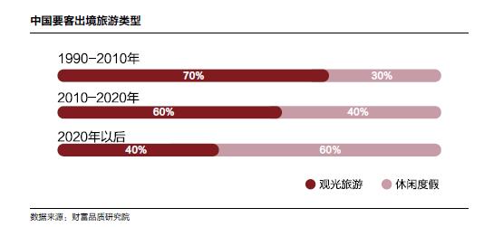 此前,我们在分析日本旅行时,就不断提到中国游客已经不再是以买买买为主了,而是开始享受旅行,心态发生了很大变化。对于中国高端消费人群来说,旅行的趋势也是这个节奏,他们要全方位的体验当地的美食、酒店、景点和人文特色。据财富品质研究院调研,预计到2020 年,60% 的中国要客出国是为了更好地休闲度假与生活体验。中国正进入大旅游消费时代由观光旅游向生活方式过渡。