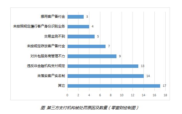 第三方支付机构被处罚的原因以及数量统计如下图: