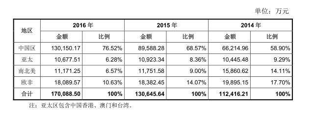 因此,中国区市场也有最多的销售人员。截至2016年末,中国区的销售人员数量占公司全部销售人员数量比例超过 90%。