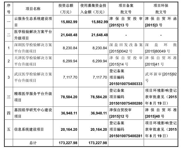 本次发行预计于 2017 年下半年完成。募集资金将主要用于基因测序相关平台和项目的升级。