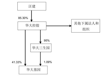 截至2016年12月31日,华大控股直接和间接合计控制公司42.42%的股份,是华大基因的最大股东。汪健持有华大控股85.30%的股权,华大研究院院长王俊持有华大控股10.5%股份,华大基因的前CEO杨爽持股4.2%。