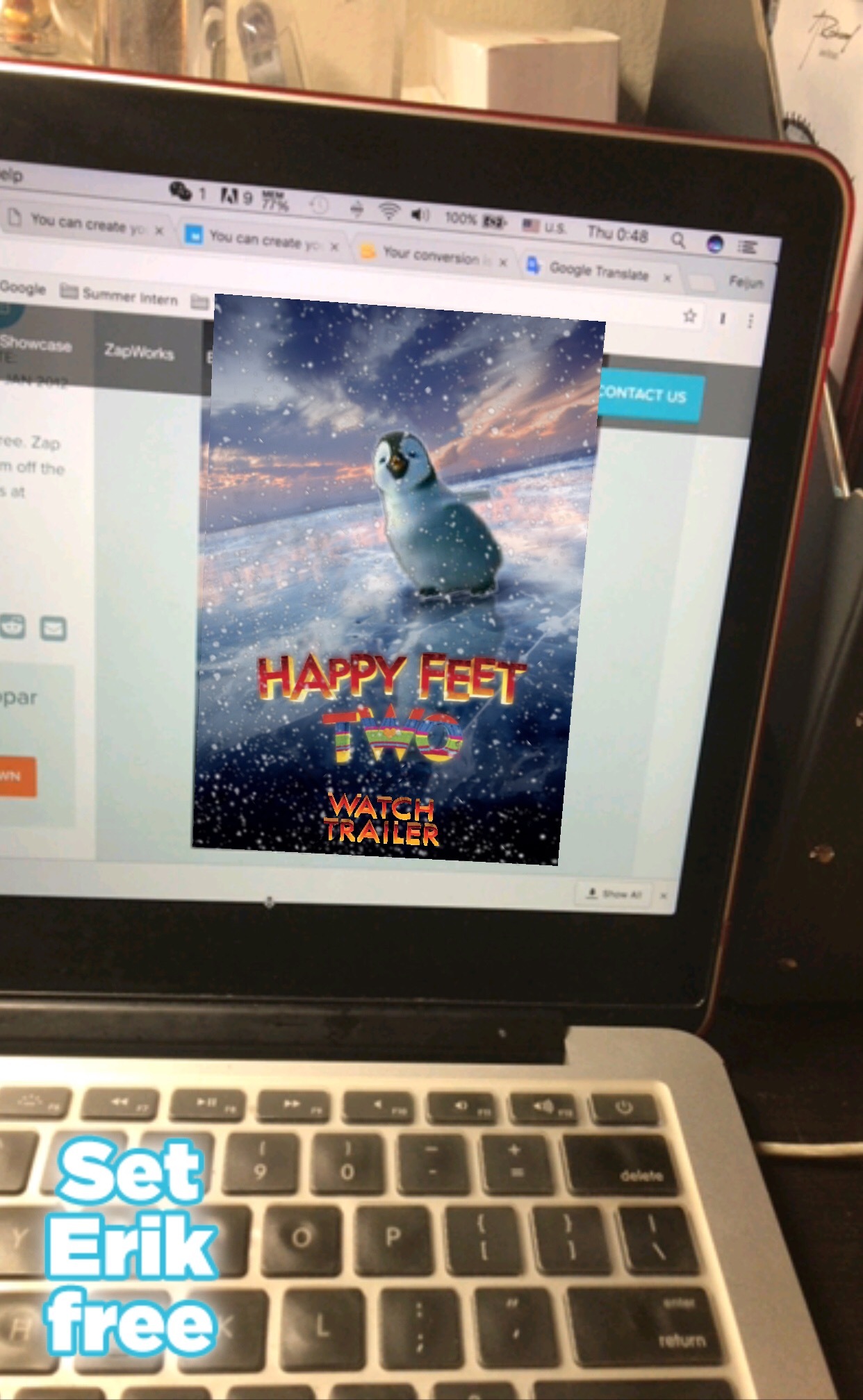 如果你欣赏够了它的演出,你可以再次按一下屏幕左下方“Send Erik Back”的按钮,就可以让小企鹅乖乖地回到海报里去啦!